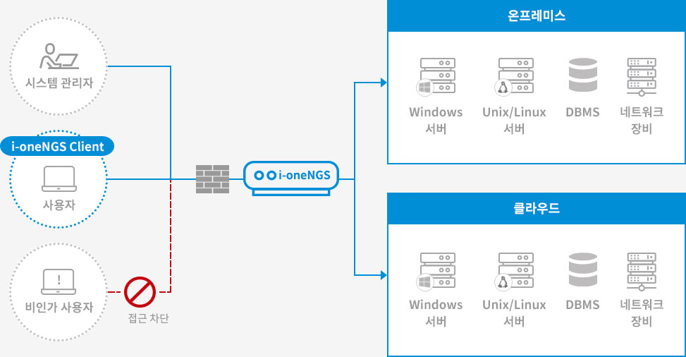 내부시스템에 접속하는 경로를 일원화하여 시스템 접근제어와 안전한 계정관리 및 패스워드 관리를 한번에 제공하는 통합 솔루션